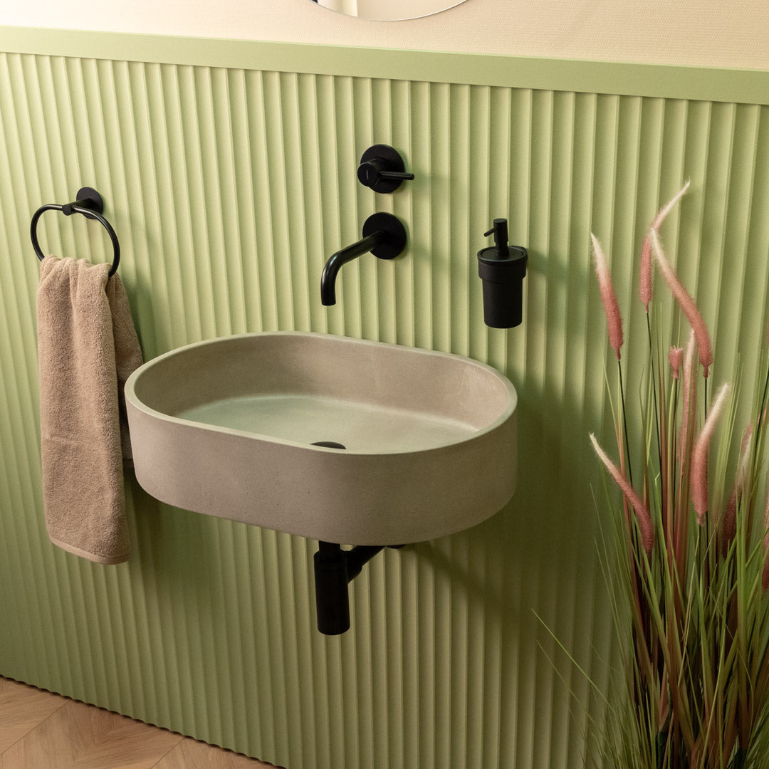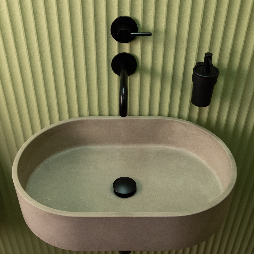 Crafted by hand from high-performance GFRC, this oval concrete sink combines durability with refined design. Its smooth matte surface and organic curves suit modern and minimalist interiors. Each piece is unique, with subtle variations in tone and texture that reflect its handmade character. Designed for easy countertop installation, it’s a practical and elegant choice for any bathroom.