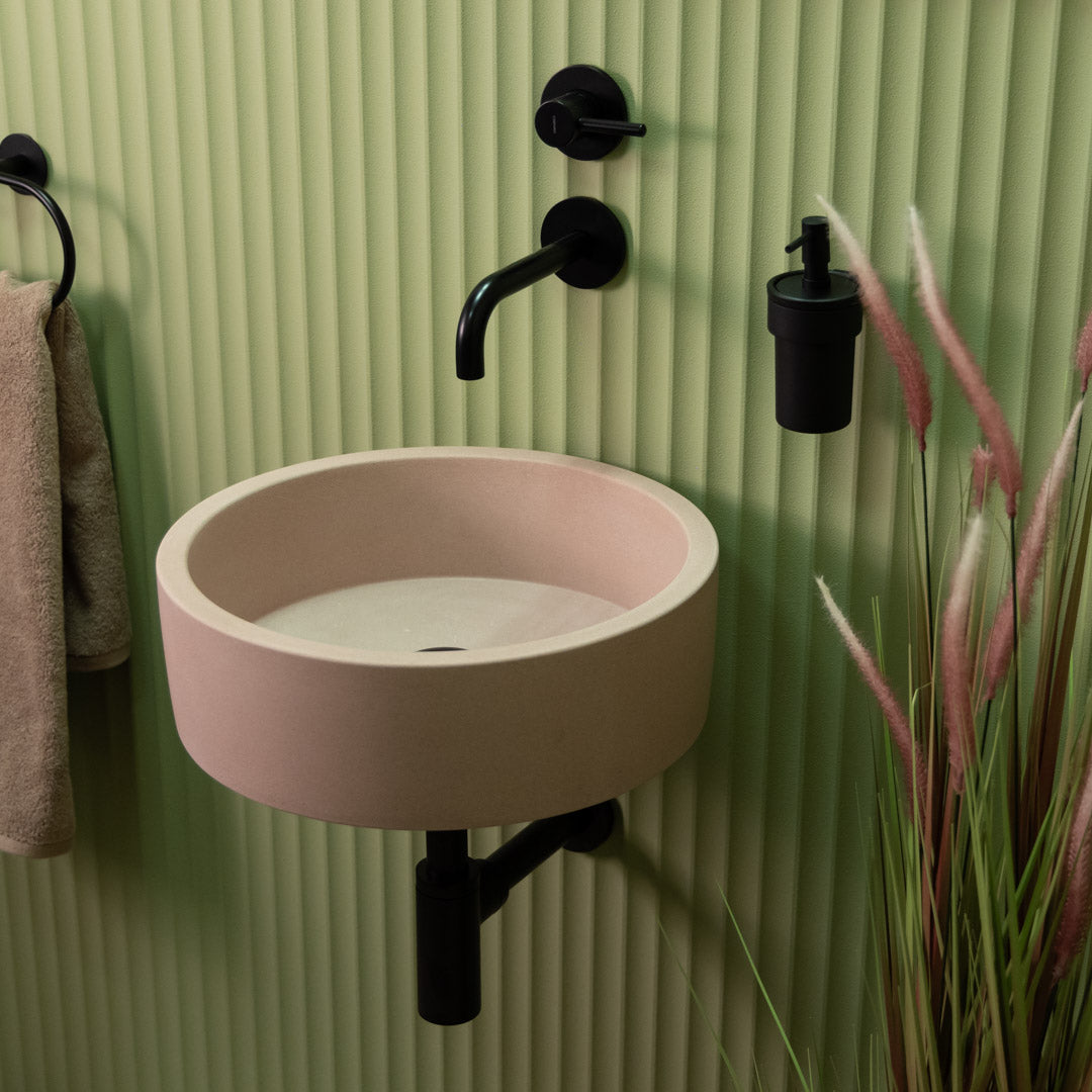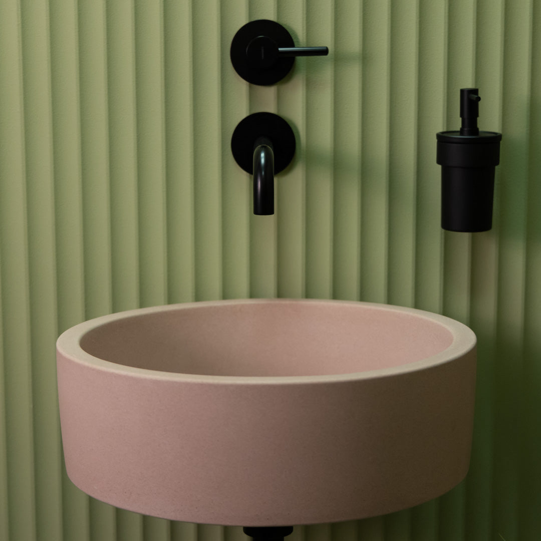 Crafted by hand from high-quality concrete, this round sink features soft edges and a smooth matte finish that suits a wide range of interior styles. Each basin is unique, displaying natural tonal variations and surface markings that emphasize its handcrafted character. Designed for easy countertop installation, it offers both durability and understated elegance for everyday use.